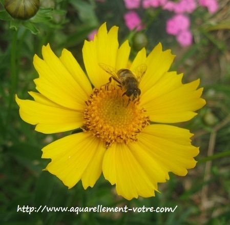 Je suppose que ce sont des coréopsis, il faut que j'en remette dans le jardin, elles ont disparues et c'est joli et utile !<br />