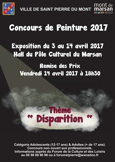 pour l'expo de peinture, rendez-vous au pôle culturel du 4 au 14 avril, vous pouvez voter pour le prix du public.