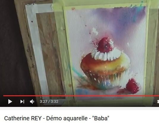 aujourd'hui je vous présente une vidéo d'une artiste que j'aime beaucoup Catherine Rey, une artiste que j'aime beaucoup. là c'est une aquarelle pour les gourmands (es).