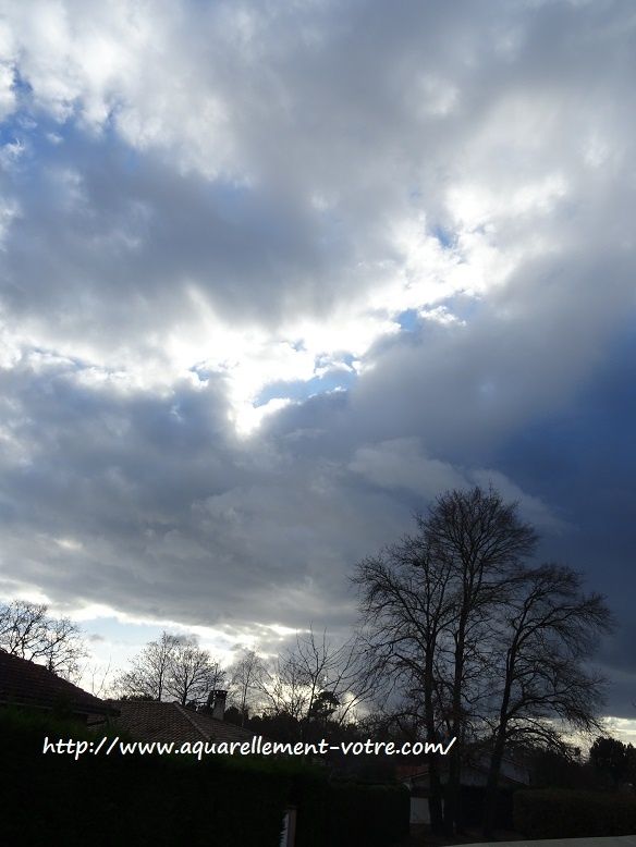 Ciel assez similaire chez moi ce matin, mais point de bleu, juste des nuances de gris, et la pluie en prime.<br />