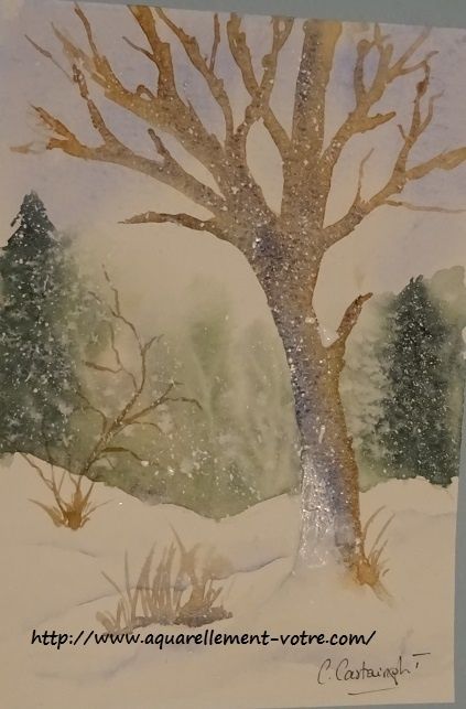 carte de voeux à l'aquarelle : paysage d'hiver nov 2016 |